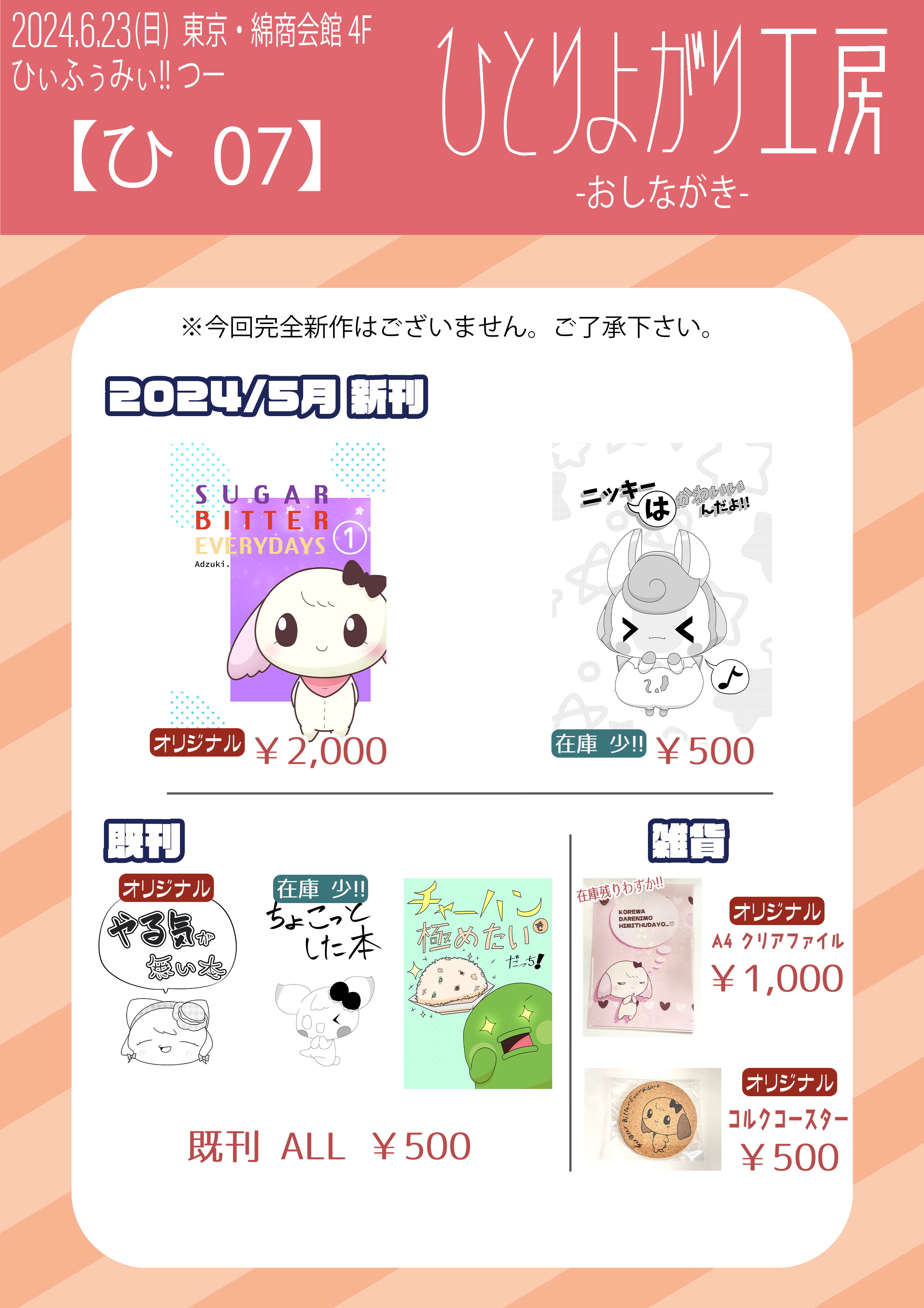 ■2024.5.26 COMITIA148 【つ-51a】 [サークルカット] [おしながき]